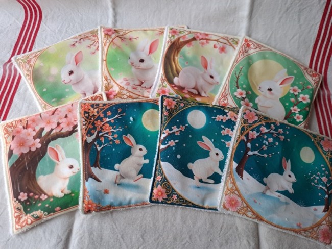 Env. 13 x 13 cm ( les cotons du commerce font environ 7.5 x 7.5 cm).