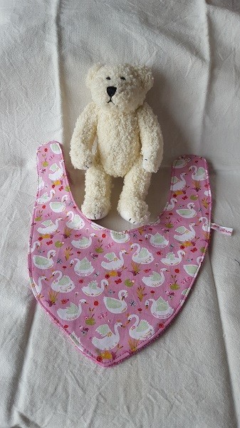 Bavoir bandana 0-18 mois en coton Oeko-Tex imprimé de cygnes fond rose