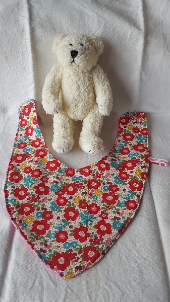 Bavoir bandana 0-18 mois en coton Oeko-Tex imprimé style liberty fleurs roses