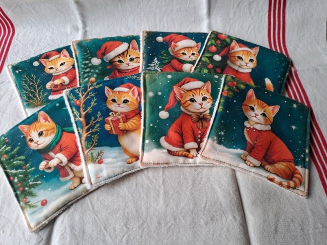 Lot de 8 grandes lingettes "Chatons de Noël"