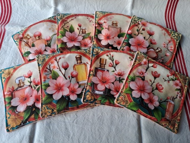 Lot de 8 lingettes style Liberty fleuries fond marine