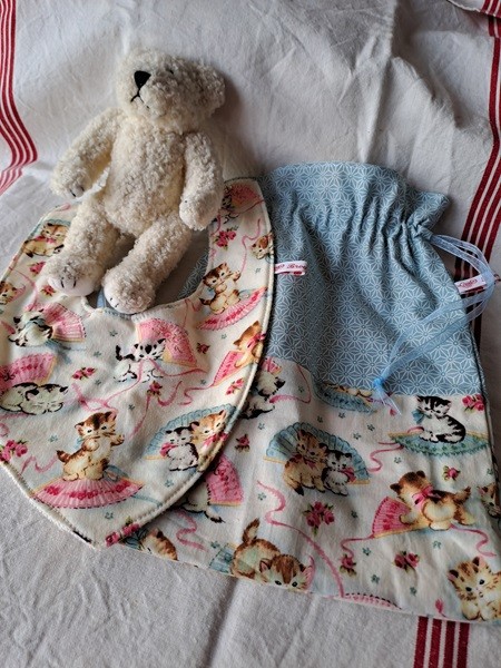 Bavoirs bandanas duo "Lapins et oies" et Pois blancs 0-18 mois